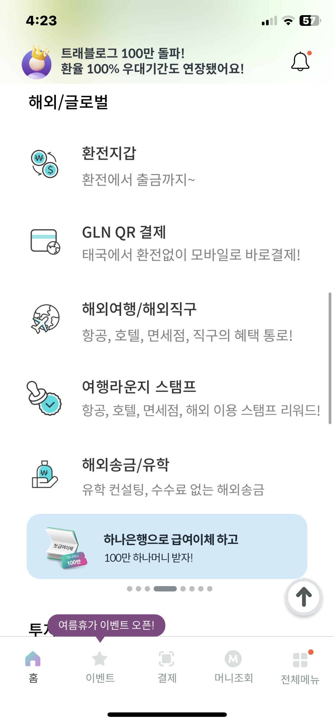 • 원화로 재환전시 수수료 5% -> 1% 이벤트 중