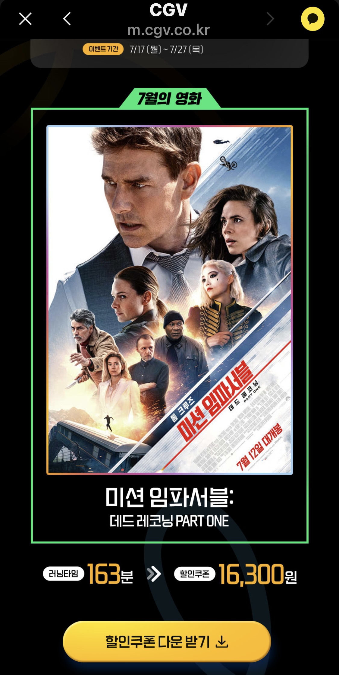 쿠폰링크 >> http://cgv.kr/f4NJz