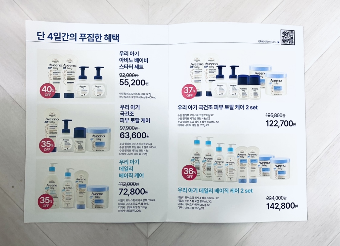 딱 4일 간만 진행되고 있는 아비노 베이비페어 행사입니다. 불가피하게 구매를 하지 못하셨거나, 방문이 어려우신 분들은 꼭 저 사진에 있는 QR코드 통해서 행사가격으로 구매하시길 바랍니다.