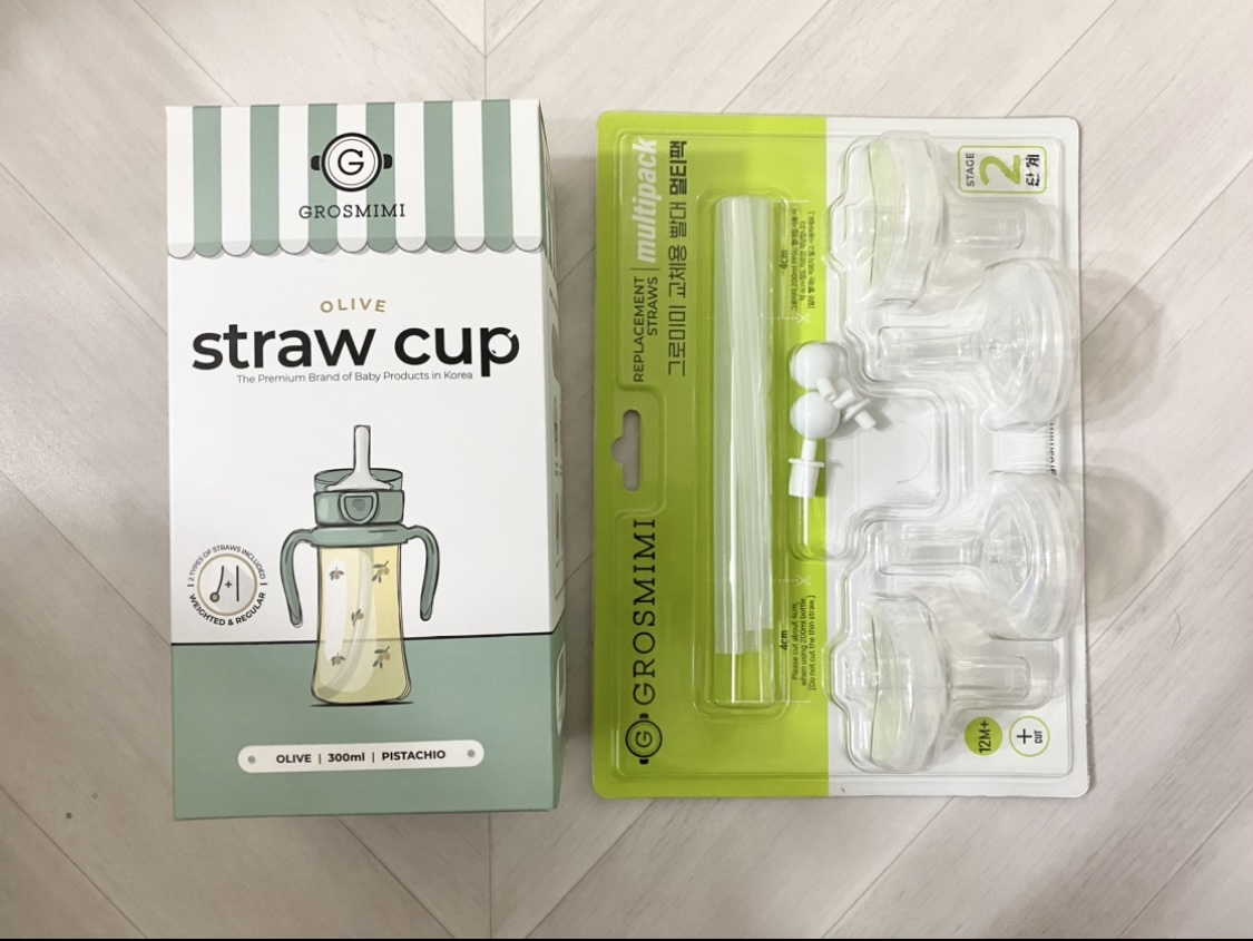 제가 구매한 올리브 300ml 피스타치오 물병 19,000원 + 그로미미 교체용 빨대 리필팩(추형) 19,000원