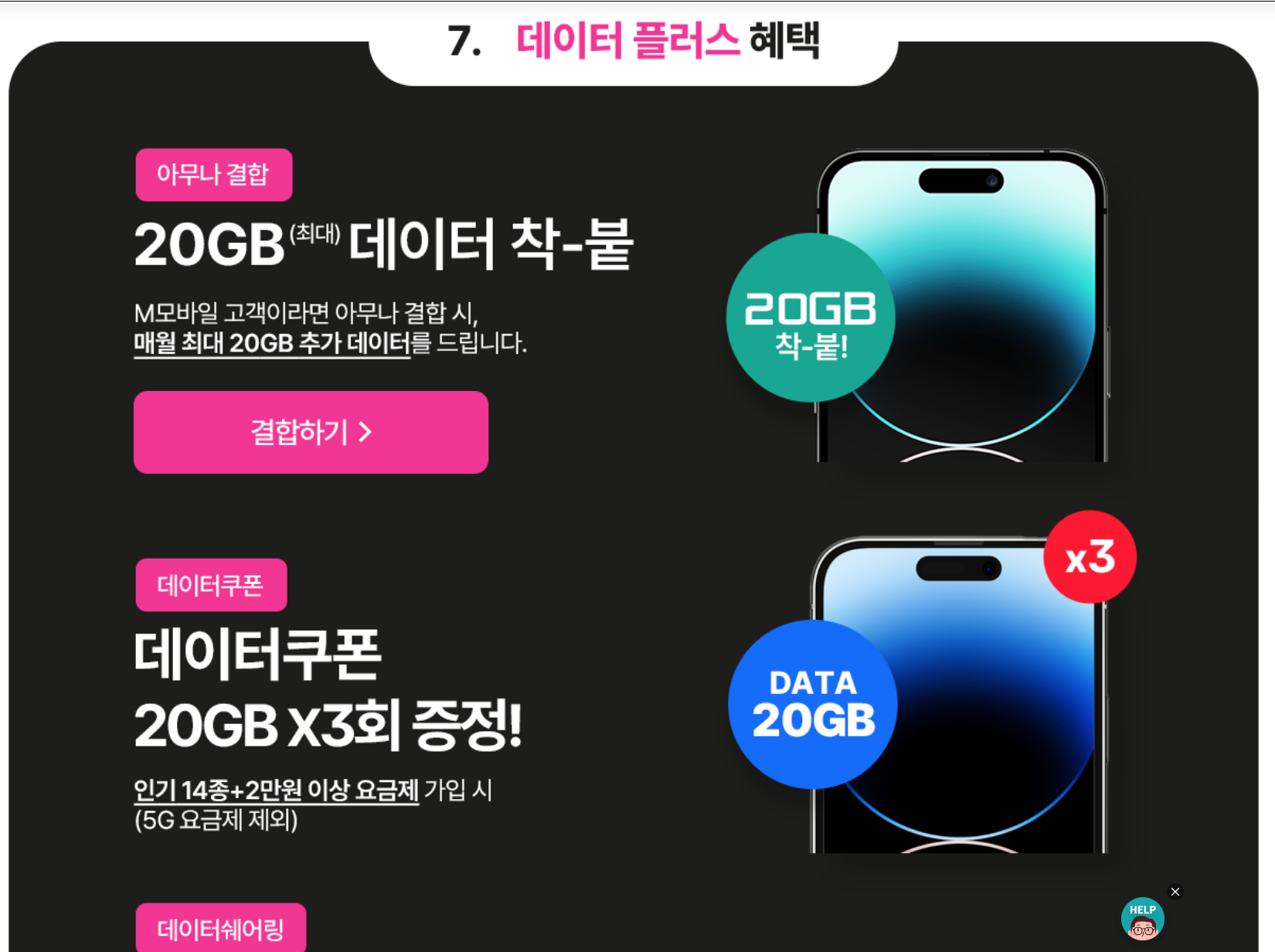 7. 누구나 결합혜택 최소 5기가 ~ 최대 20기가