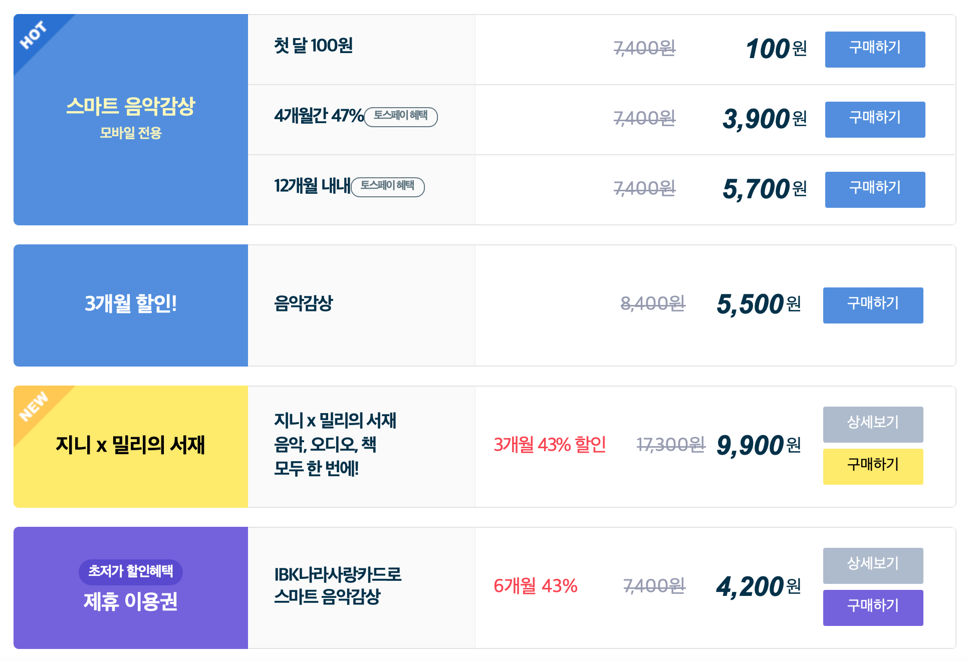 지니 뮤직/멜론 뮤직 요금제 링크 바로가기 >>> 클릭