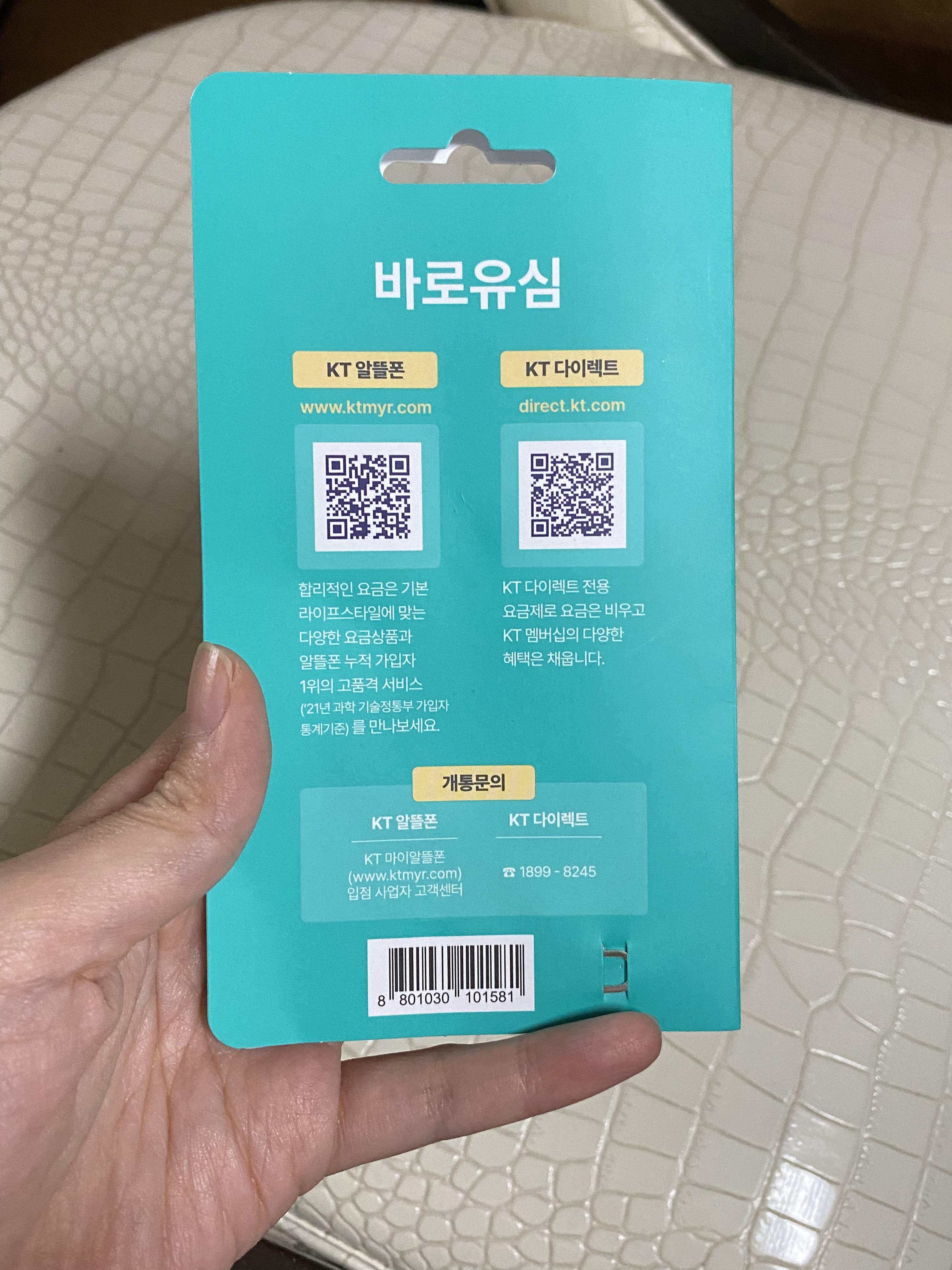 유심구매에 최대한 많은 할인을 받고 싶어서 집 근처에 있는 CU에 가서 일반 유심 4,400원짜리를 구매하려 했습니다. 그런데 씨유에는 아래사진과 같은 유심밖에 없었고 결제하려 하니 8,800원이더라고요. 그래도 빨리 진행시킬 수 있단 생각에 kt m 모바일에서 제공하는 무료 퀵서비스도 제외한 채 저는 8,800원 유심을 구매했습니다. 결론적으로는! 편의점에서는 절대 구매하지 마세요! 가입선물 제외 유심이라 돈을 몇천 원 더 내고 가입선물도 못 받기 때문입니다! 아래 이미지와 같은 유심은 절대! 구매하지 마세요!