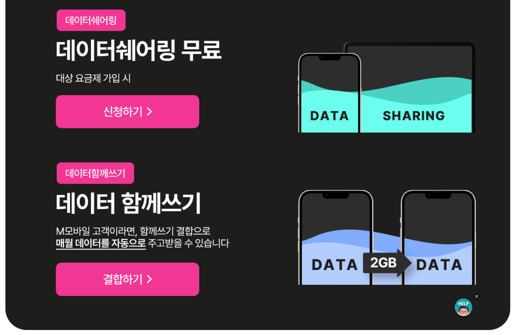 M모바일 고객이라면 아무나 결합 시 데이터를 최소 5기가에서 최대 20기가까지 추가로 받으실 수 있습니다. 최저요금제인 7기가 요금제에 가입했을 시, 누구나결합으로 5기가를 추가로 받아 총 12기가를 사용할 수 있기 때문에 충분한 데이터량이라고 생각됩니다. 아무나 결합은 kt m 모바일 네이버 카페에 들어가시면 쉽게 구하실 수 있습니다.