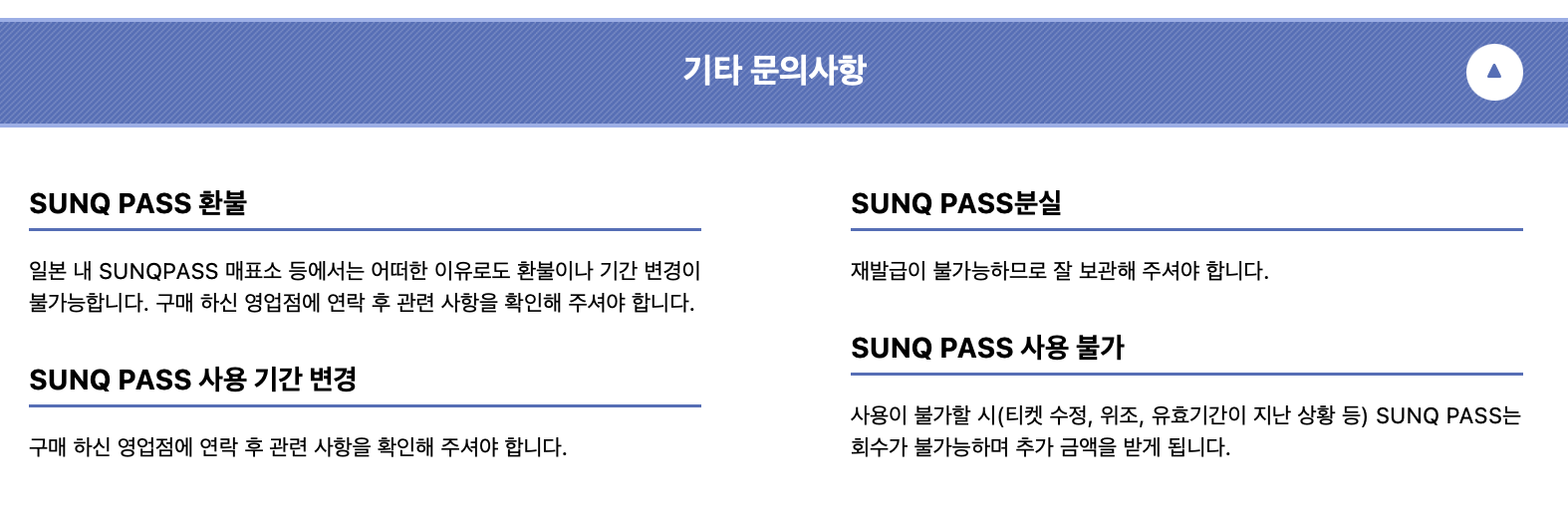 산큐패스를 실물권으로 발급받은 후 환불이나 기간 변경이 불가능하며, 분실 시에도 재발급이 불가하니 잘 보관해주셔야 합니다. 사용기간 변경은 구매한 영업점에 연락 후 관련 사항을 확인해야하니 신중하게 사용기간을 정해주시길 바랍니다.