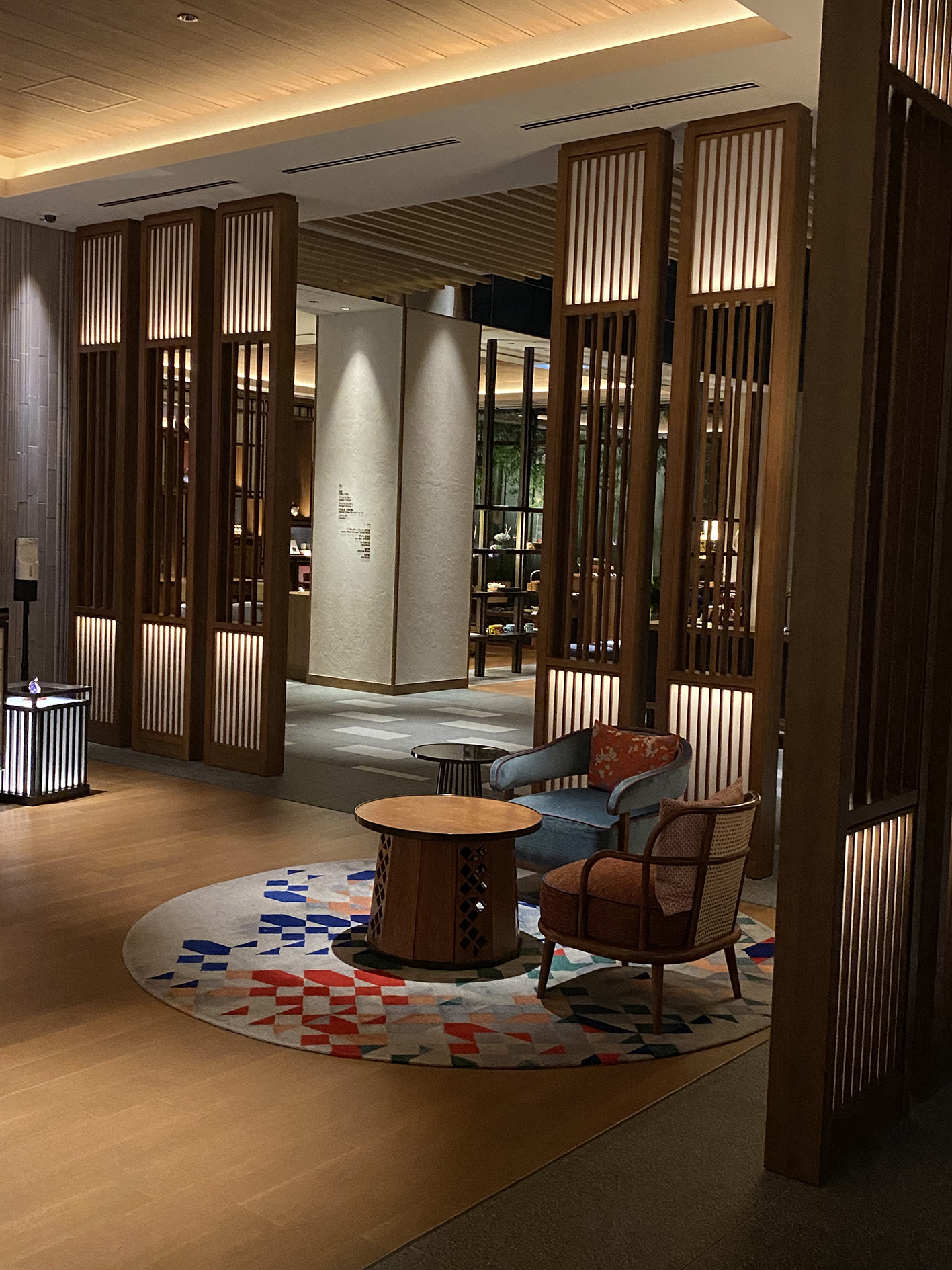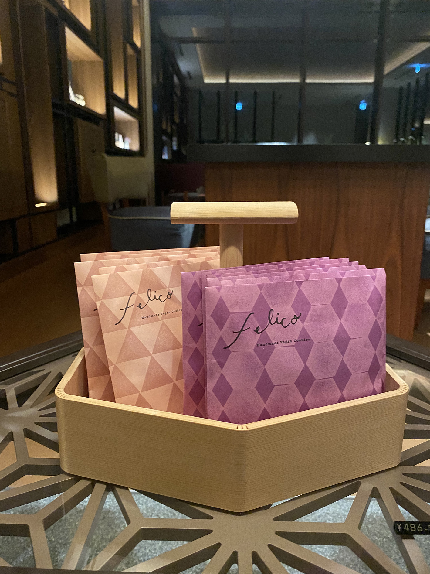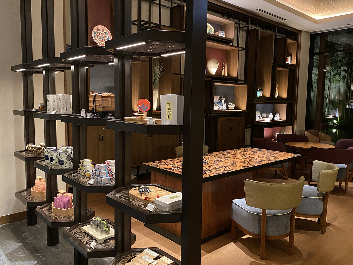 사진 안에 보이는 테이블은 IHG플랫분들이 오면 프런트데스크가 아닌 이 테이블에서 체크인이 진행됩니다. 바로 옆에는 기념품을 구매할 수 있는 물품들이 놓여 있는데 일본의 패키지 디자인과 패턴, 그 감성이 너무 예뻐서 참고하려고 찍어 왔네요. 같이 보시면 좋을 거 같습니다.