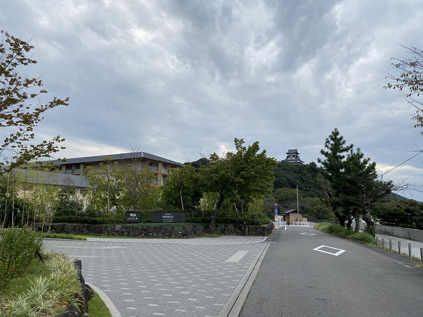 가다 보면 이누야마 성을 이렇게 아주 가까이 볼 수 있습니다. 호텔 부지로 들어가면 대나무로 조성된 조경과 마치 패턴을 디자인한듯한 반듯한 도보가 보이면 인디고 이누야마 우라쿠엔 가든 호텔에 도착하실 겁니다. 호텔 바로 옆에는 국보로 지정된 일본정원이 있어서 그런지 호텔 조경에 많이 힘써서 그런지 고풍스러운 느낌을 더하는 거 같아요.