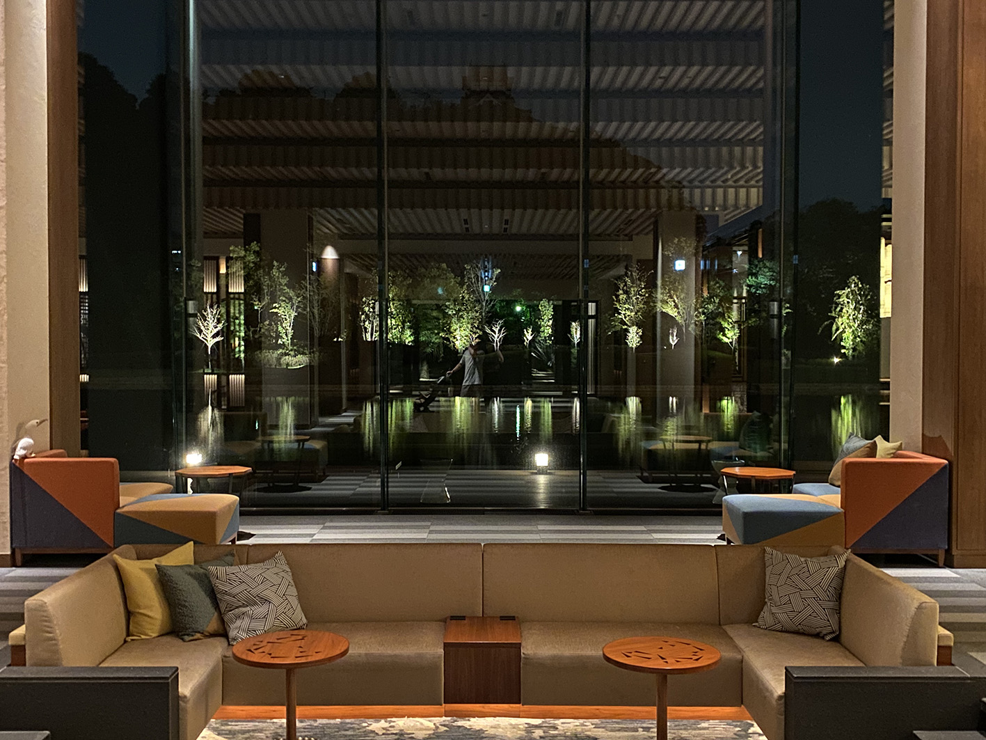 은은한 조명들 때문인지 밤에 보아도 무척이나 아름다운 곳입니다. 로비를 들어서면 통창으로 바깥 정원과 이누야마성을 바라볼 수 있으며 입구에서 오른편은 조식당 겸 레스토랑과 바가 있고요. 왼쪽으로 들어서면 프런트 데스크와 쉴 수 있는 공간이 마련되어 있고, 왼쪽으로 객실로 향하는 엘리베이터와 온천과 헬스장으로 향하는 통로가 있습니다.