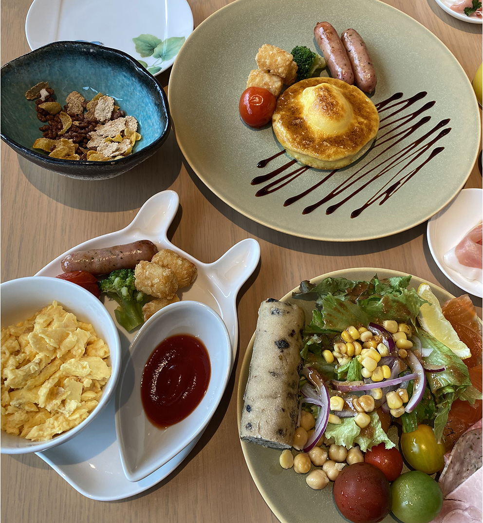 이 곳의 호텔 조식은 올 뷔페가 아니라 메인메뉴 + 미니뷔페인데요. 메인메뉴는 일본식 혹은 아메리칸식을 고르면 됩니다. 일본식은 정갈하게 반찬 몇가지와 생선요리, 밥, 국이 나오며 아메리칸식은 매번 먹어봤던 계란요리들과 소시지/베이컨 등으로 구성되어있습니다. 저는 일본에 왔으니 일본식을 드시는걸 추천드리는데요. 정말 맛있는 한끼였다라고 느끼실 거 같아요. 다만 초딩입맛을 가지신 분이라면 일본식은 안맞을 수도 있어요. 저는 일본식이 더 제 취향에 맞았습니다.