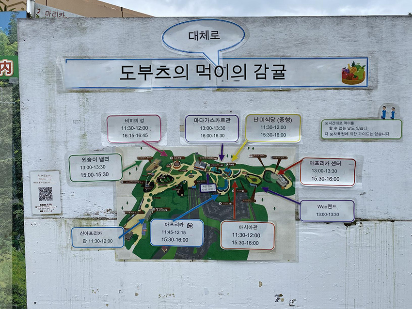 입장하자마자 반겨주는 몽키센터 동상?입니다~ 모닥불피우는 일본원숭이부터 다양한 원숭이들이 모여져 있네요. 바로 뒤에는 인포메이션 센터 빌딩인데 아주 작은 전시와함께 기념품을 파는 곳입니다. 안내센터 기준으로 왼쪽 오른쪽이 갈려져 있는데 왼쪽부분은 일본 원숭이를 볼 수 있으며 더 구석으로 가게되면 푸드코트가 나옵니다. 중간에 원숭이들끼리 신호를 보내는데 진귀한 풍경이였어요. 그리고 오른쪽으로는 정말 다양 원숭이들을 많이 모여있는데요. 고릴라, 침팬치등 다양한 원숭이가 있고, Wao랜드에서는 거미원숭이들이 머리 위로 뛰어다니며 원숭이의 점프력을 더 가까이서 체험할 수 있는 곳이 있습니다.