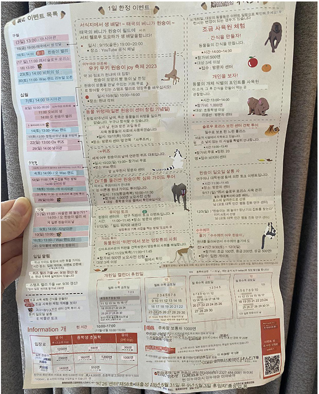 앞서 언급했든이 Wao랜드에서 거미원숭이가 뛰노는걸 볼 수 있어요! 점프력이 상당하니 보는 재미도 쏠쏠! 관계자분이 바로 옆에 있기도하고 사람을 헤치지 않으니 걱정없이 관람하시면 좋을 거 같아요. Wao랜드도 9월말부터 개장시작해서 개장을 안하는 달도 있으니 꼭 참고하시고 방문해보세요.