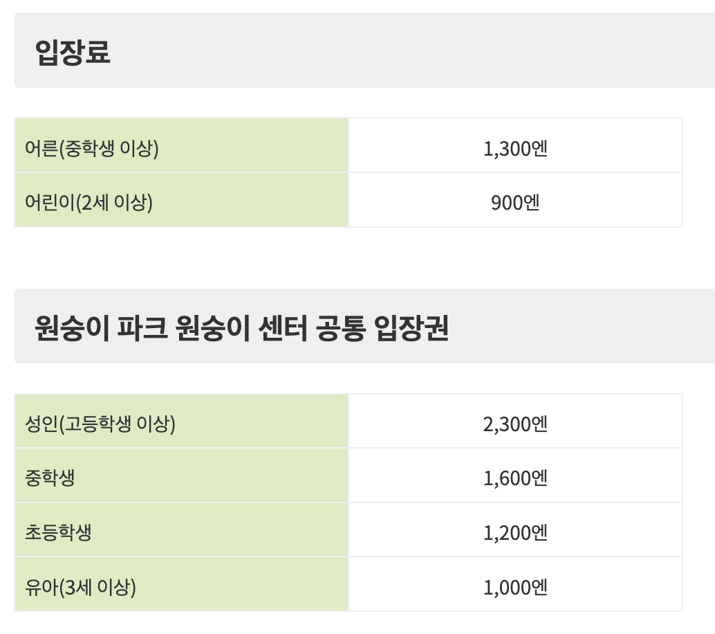 지도상으로는 몽키파크를 놀이동산으로 지정되어있고, 몽키센터는 다양한 종류의 원숭이들을 보실 수 있습니다. 1일권을 구매하시면 몽키파크와 몽키센터 둘다 입장이 가능합니다만 놀이기구탑승권은 또 별도로 구매해야합니다. 여름에는 몽키파크 워터파크와 겨울에는 아이스 스케이트장으로 많은 관광객이 몰려듭니다. 몽키센터에서는 겨울 한정으로 일본원숭이가 모닥불을 피울 수 있는 모습도 볼 수 있습니다.