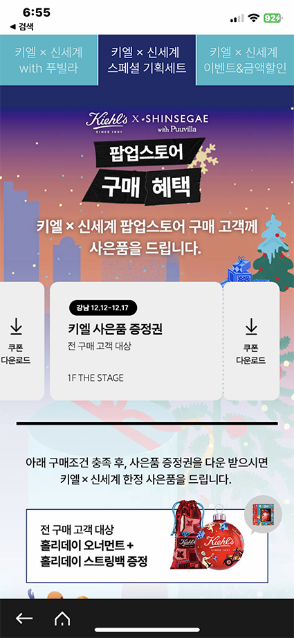 키엘 구매예정이 있으셨다면 최대할인이벤트도 같이 진행하고 있으니 꼭! 신세계 앱에서 쿠폰을 다운로드하시고 방문하시길 바랍니다. \