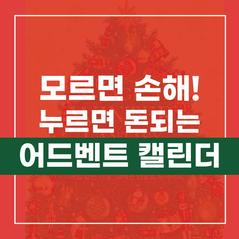 이 어드벤트 캘린더를 마케팅으로 쓰고있는 업체 2군데를 소개해드리려 합니다. 12월 1일에는 조금 더 많은 업체들과 혜택들이 있었는데 너무 많은 관심으로 조기종료된 이벤트도 있어 아쉽네요. 조금 늦은 포스팅이어서 그런 조기종료된 업체들은 다 알려드릴 수는 없지만, 지금이라도 진행하신다면 제품을 더 저렴하게 아니면 포인트를 소소하게 쌓을 수 있는 꿀팁이니 놓치지 마시고 확인해 주세요!
