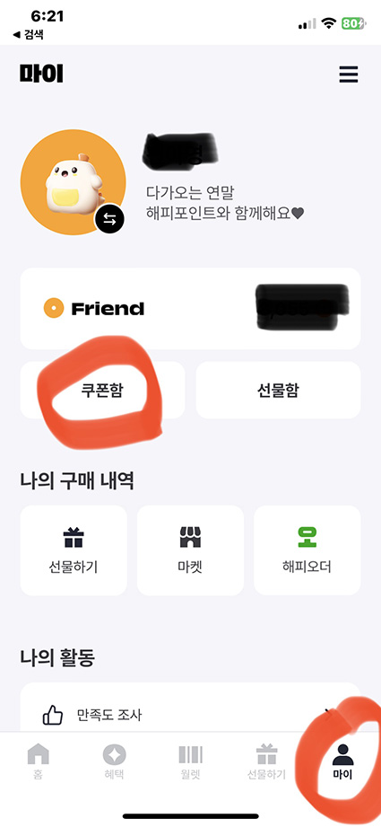 던킨도너츠 어드벤트 캘린더는 해피포인트 앱에서 확인가능하고, 이벤트 19번째 정도에 나와있습니다. 잘 모르겠다 하시면 모바일에서 이링크를 눌러주시면 해당화면으로 넘어갑니다. 신세계와 좀 다른 점은 캘린더 날짜를 누르는 게 아니라 "오늘의 선물 받기"를 클릭하셔야 하고 당첨여부를 바로 팝업으로 안 알려줍니다. 당첨여부는 마이 - 쿠폰함에 들어가시면 어떤 쿠폰을 받았는지 확인하실 수 있습니다.
