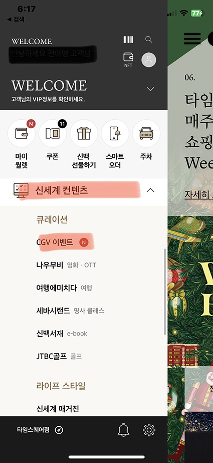 이벤트 참여방법 : 신세계 앱 - 신세계 컨텐츠 - cgv이벤트