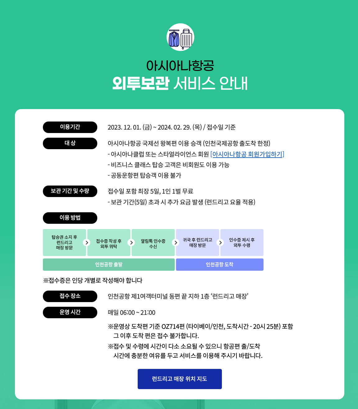 아시아나항공 외투보관 서비스 RE-OPEN with 런드리고