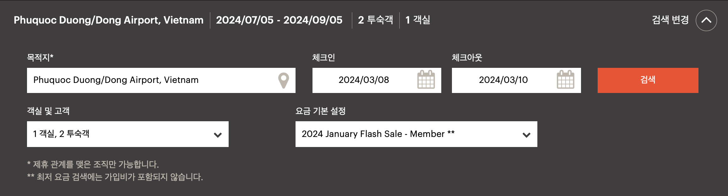 프로모션 적용은 요금 기본 설정에 들어가 보시면 아래 이미지처럼 여러 가지 선택지가 나올 겁니다. 여기서 IHG 무료 회원가입을 마치신 분이라면 "2024 January Flash Sale-Member**"를 선택해주시고 금액을 검색해 주시면 됩니다.