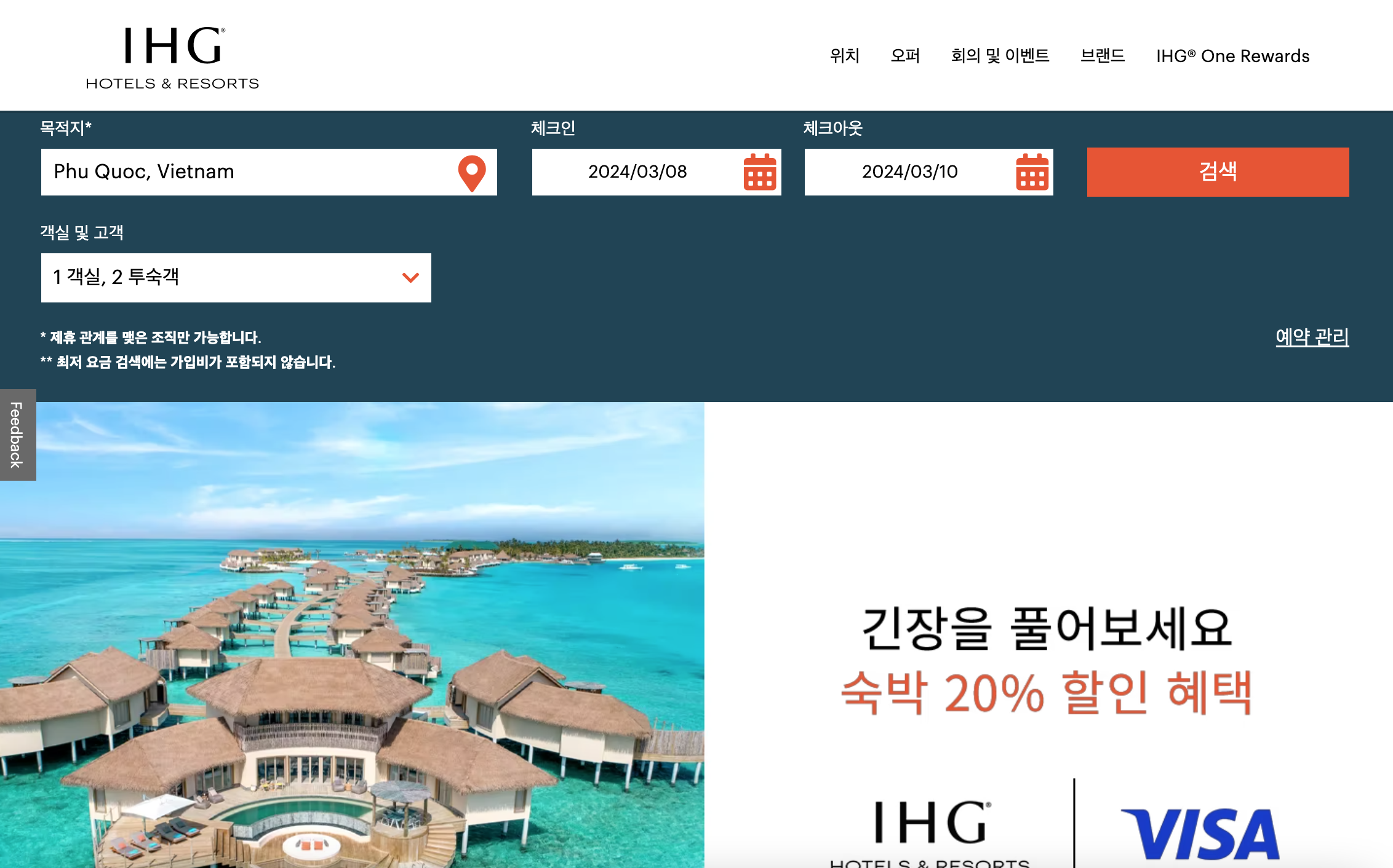 | 상시혜택! VISA 신용카드 이용객이라면 IHG호텔 그룹 최대할인 20% (0) | 2024.01.20 |
