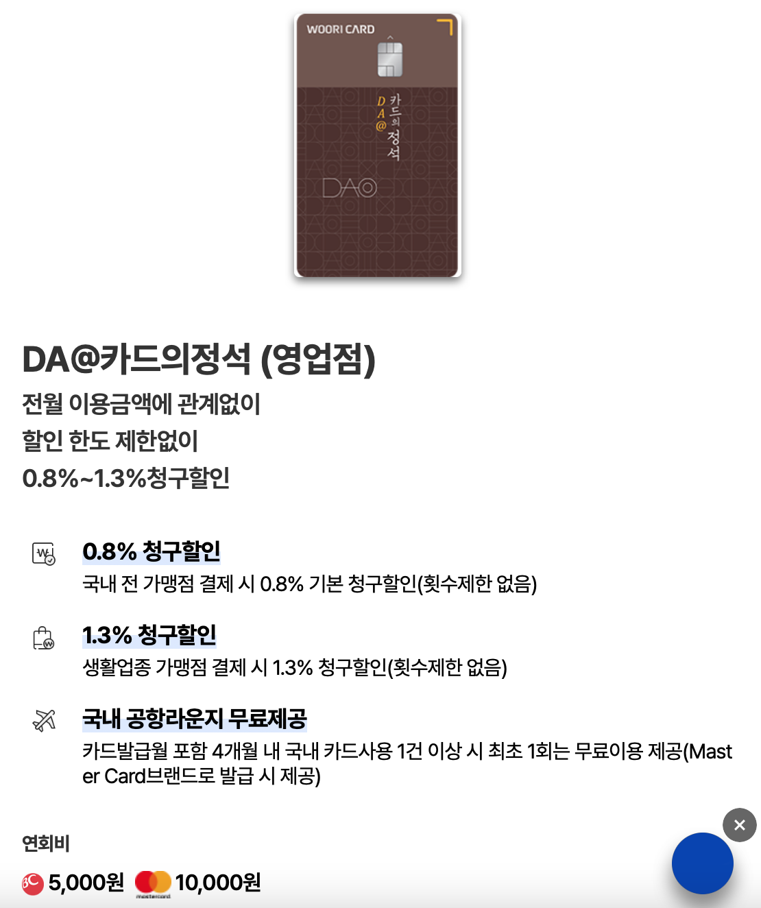 √ 연회비 : 10,000원(마스터카드)