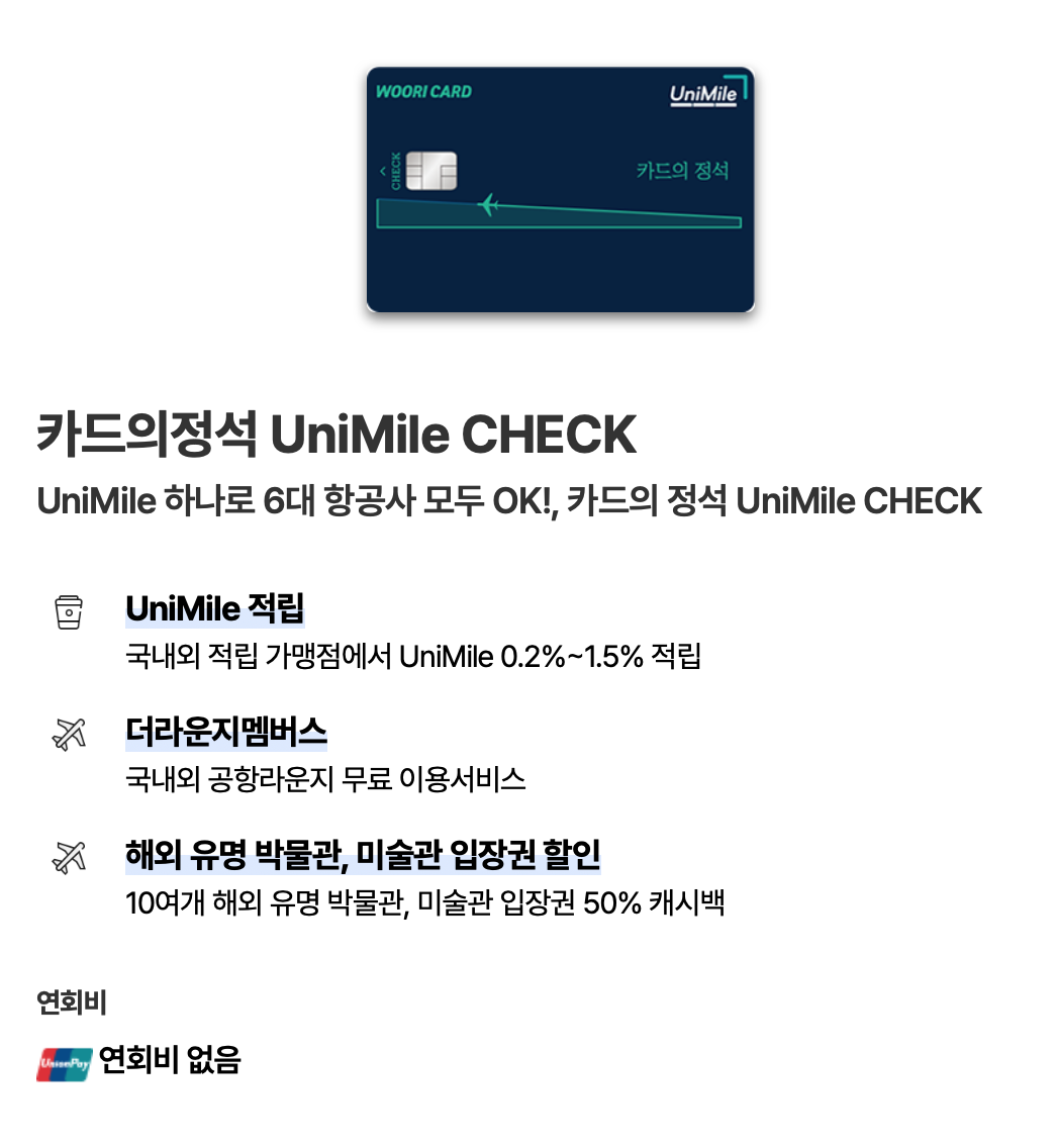2. 우리카드 카드의 정석 UniMile 체크카드