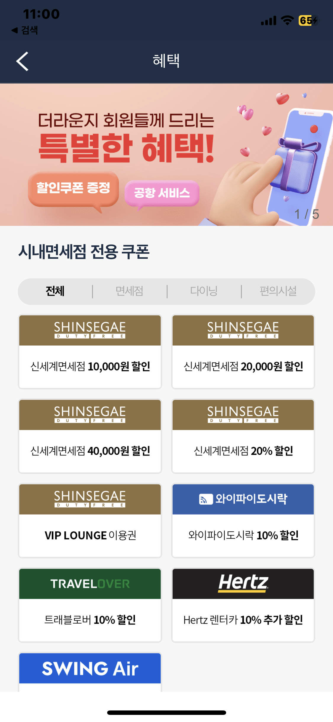 7. 신세계 면세점 앱 로그인 > 마이페이지 > 라운지 이용쿠폰 확인