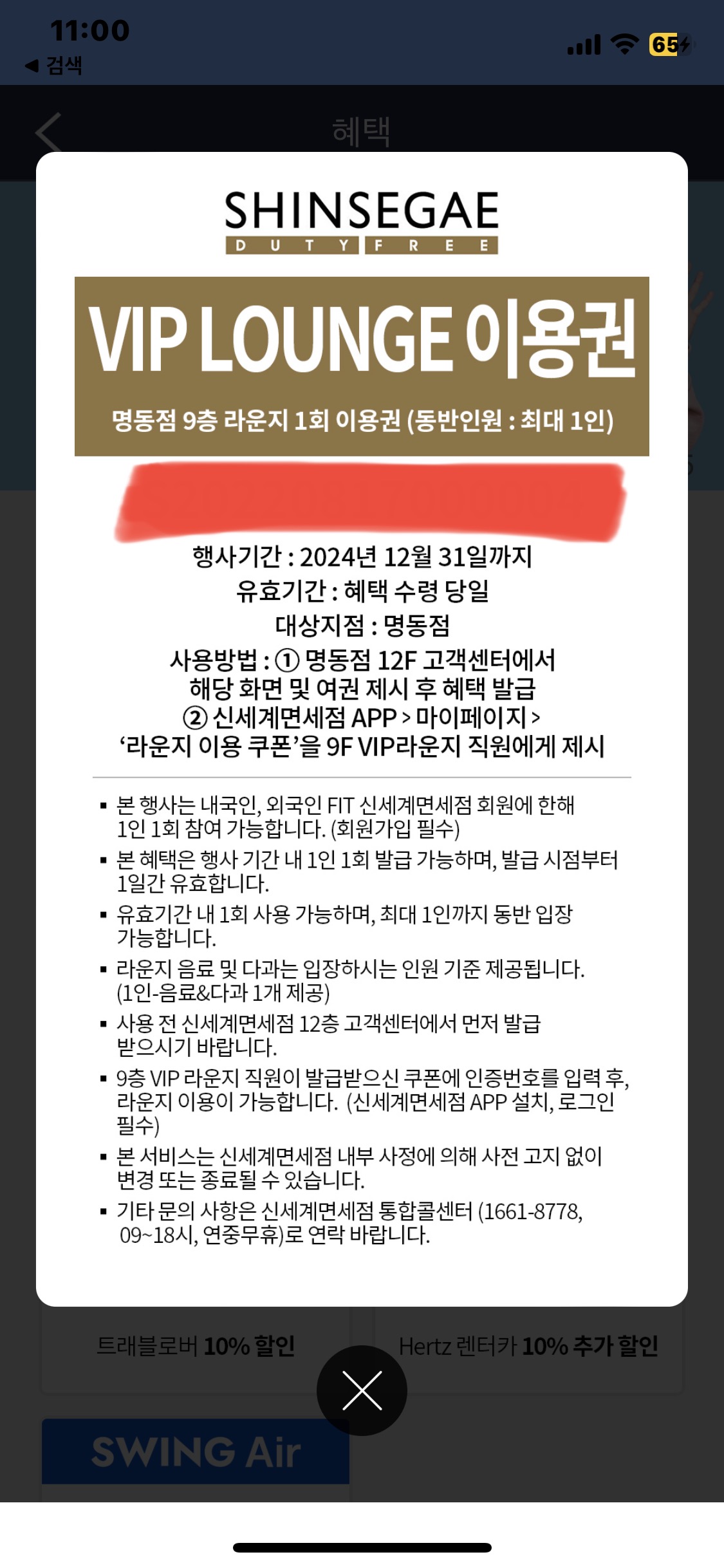 4. 신세계 VIP LOUNGE 이용권 확인