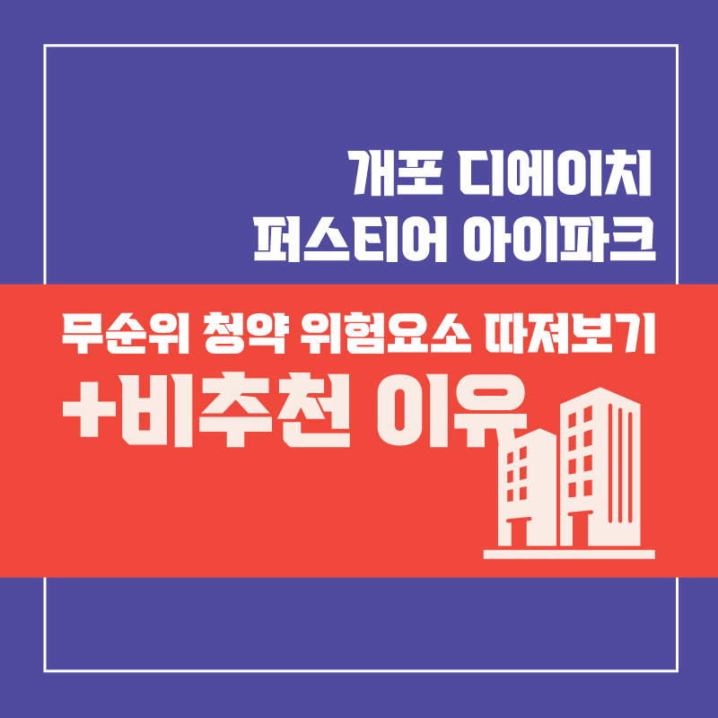 요즘 핫한 개포 디에이치 퍼스티어 아이파크 무순위 줍줍 소식에 저를 포함해서 많은 분들이 두근두근 하셨을 거 같아요. 당첨되면 로또지만! 위험요소가 있어 그것에 대해 정리해보려 합니다. 개포 디에이치 퍼스티어 아이파크 무순위 청약 관련 정보는 아래링크를 통해서 한번 확인해 주시고, 그다음 위험요소도 같이 아시고 청약준비하시면 좋을 듯싶습니다.