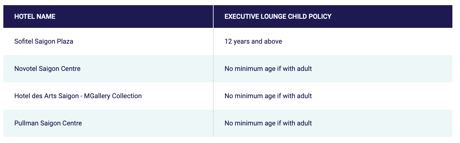 √ 소피텔 사이공 플라자 : 만 12세 이상, 클럽라운지 출입 및 이용 가능