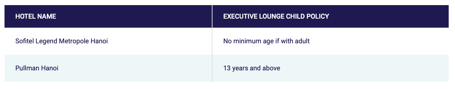 √ 풀만 하노이 : 만 13세 이상, 클럽라운지 출입 및 이용 가능