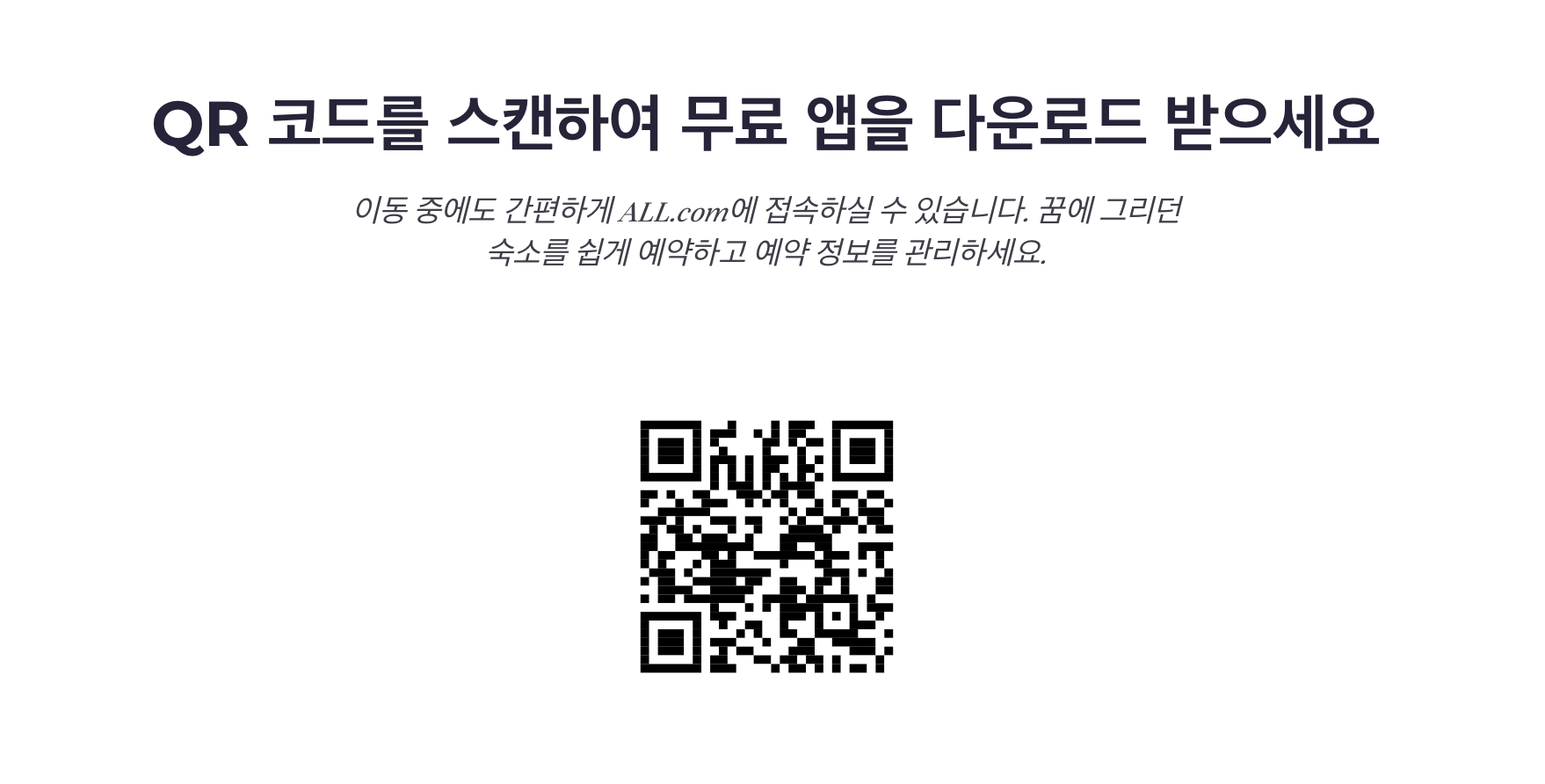 바로 아래보이시는 이미지는 PC에서 보여지는이미지인데요. 이번 할인 프로모션은 앱으로 예약하셔야지 15% 추가할인을 받으실 수 있습니다. 앱 다운로드가 안되어있으시다면 아래보이는 QR코드를 카메라로 비춘 뒤 다운로드 후 앱 실행해주시면 됩니다. 15% 할인을 기본적으로 해주지만 저는 여기서 추가 + 6% 더 할인 받을 수 있는 캐시백 이벤트도 알려드릴테니 포스팅 계속 봐주세요!