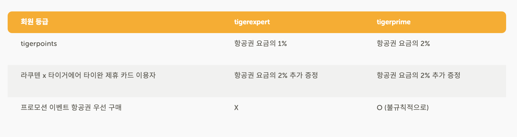 첫 등급인 타이거 엑스퍼트라면 항공권 요금의 1% 적립