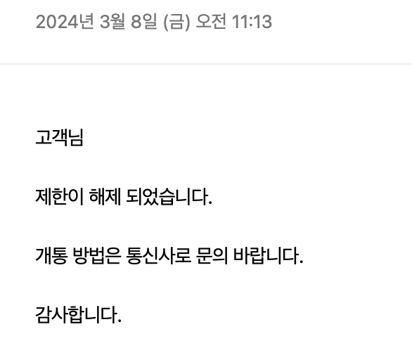 신청서를 보냈는데 정말 빠른 답변을 주셨습니다. 제가 잘 못 적은 부분 수정 후, 다시 신청서를 보내니 제한을 해제시켜주셨습니다.