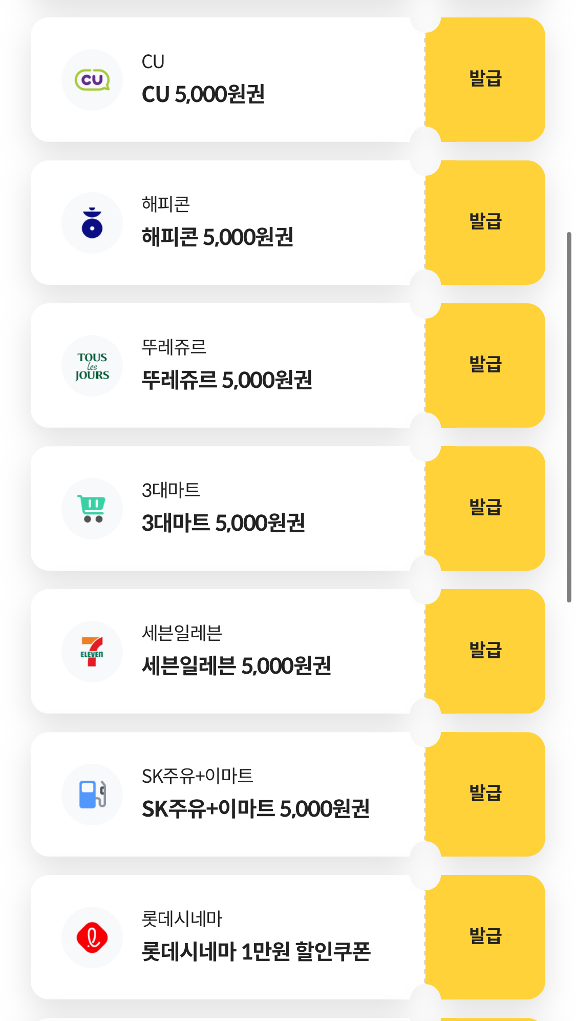 멤버십 쿠폰 제공의 대상자는 국민은행 KB스타클럽 모든 가입자들에게 드리는 혜택입니다. 그런데 제일 낮은 등급이 패밀리라면 연 2회 정도 쿠폰을 받으실 수 있고 그랜드 등급 이상부터 연 6회의 쿠폰 서비스를 제공받으실 수 있습니다. 제공받을 수 있는 쿠폰의 리스트가 이번년도 들어서면서부터 더 다양해졌는데 캡쳐 이미지 참고해주시면 되겠습니다.