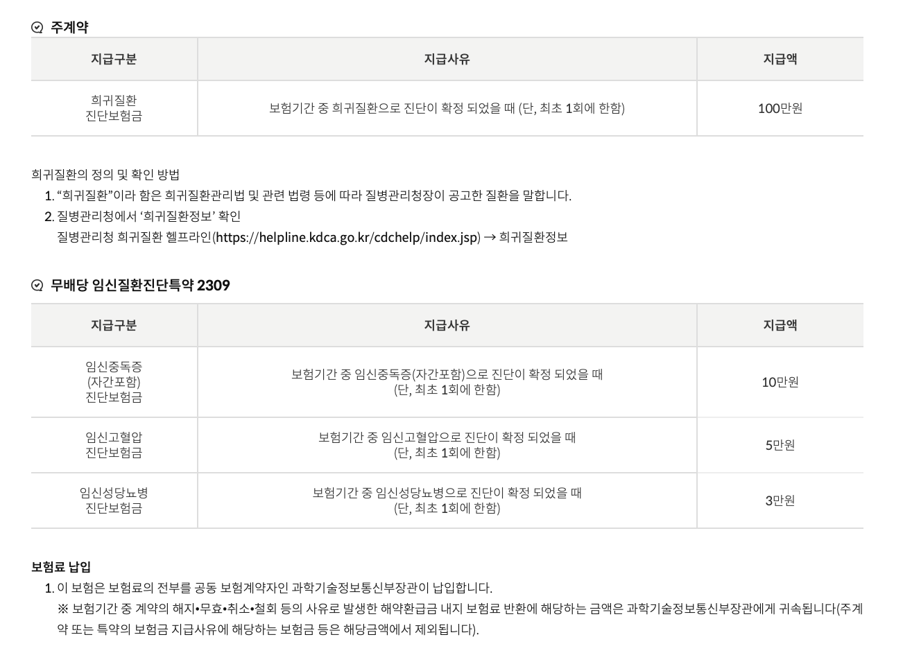 *주)희귀질환 진단보험금 등 각종 진단보험금은 각각 최초 1회에 한하여 지급합니다.