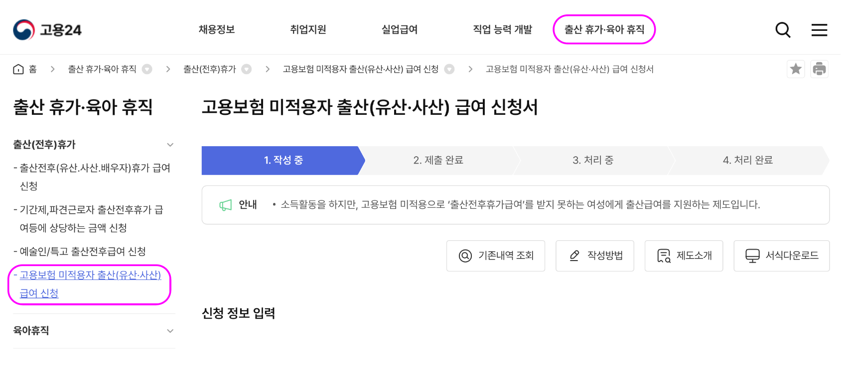 출산일로부터 1년 이내 신청 가능