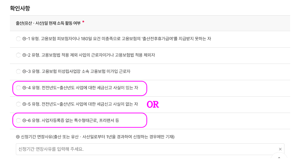 출산 전 18개월 중 3개월 이상, 그리고 출산일 현재도 소득활동을 하고 있어야하며 소득이 발생하여야 합니다.