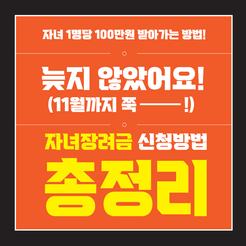 5월은 종합소득세 신고를 비롯하여 각종 장려금 정기신청하는 달입니다. 신청 마감일이 5월 31일로 현재시간으로서 몇일 안남았지만 솟아날 구멍이 있지요. 5월 31일까지 신청하면 제일 좋지만 6월부터 11월 30일까지도 자녀장려금 신청하실 수 있습니다. 그 방법 이제부터 알려드릴테니 잘 따라오세요!