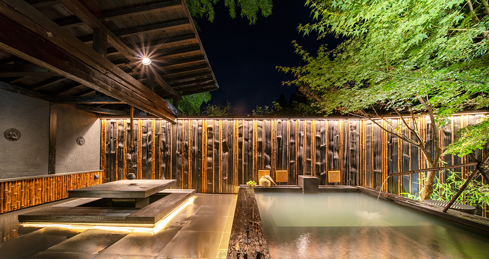 겟코쥬는 4,500평의 부지에 단 8개의 독채로 전 객실 실내 온천탕과 노천탕을 보유하고 있는 료칸입니다.
