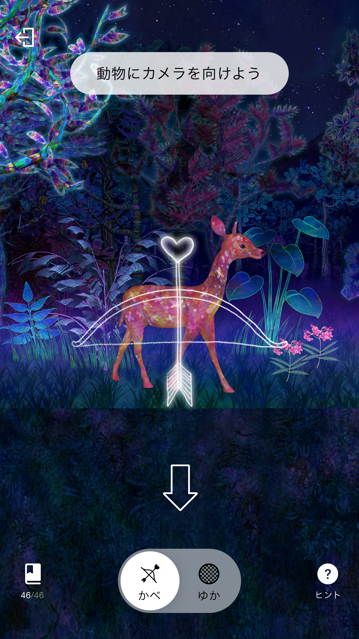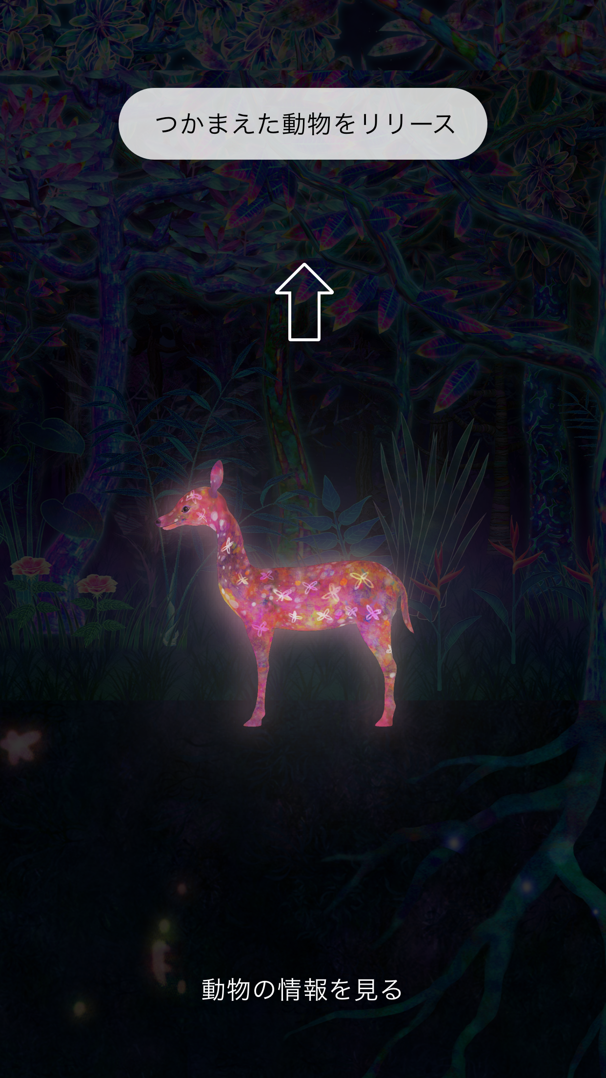 처음 입장하자마자 들어가게되는 곳은 바로 '채집의 숲'입니다. 이곳은 증강현실을 통해 동물을 채집한 후 놓아주는 체험형 학습을 경험할 수 있습니다. 팀랩 전용 앱을 다운로드하여 동물 수집을 할 수 있으며, 전시를 모두 관람한 후에도 수집한 동물들을 볼 수 있어 아이들이 너무 좋아하는 전시 중 하나입니다. 특히나 포켓몬을 수집해 봤던 사람이라면 무조건이죠. 어플은 영문으로도 이용가능하니 사진은 참고하는 것으로만 봐주세요.